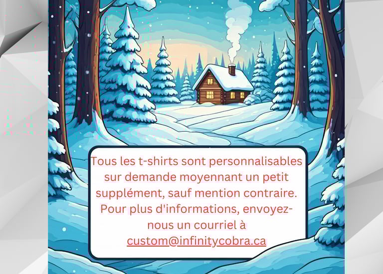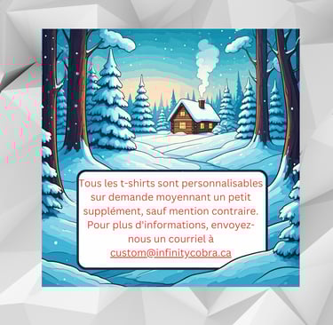 Infinitycobra se démarque dans le monde de l'impression avec ses impressions par sublimation qui mettent en valeur des couleurs vives et éclatantes, les distinguant des autres méthodes d'impression. Que ce soit sur des t-shirts, la qualité exceptionnelle de ces imprimés est inégalée. Cependant, ce qui distingue vraiment Infinitycobra, c'est sa collection d'œuvres d'art originales et exclusives. Chaque création est méticuleusement conçue pour garantir que nos clients aient accès à des pièces véritablement uniques. Des motifs abstraits aux illustrations époustouflantes, nos imprimés incarnent la créativité et l'authenticité. Découvrez la combinaison remarquable de couleurs vives et de savoir-faire exclusif avec les impressions par sublimation d'Infinitycobra et élevez votre style vers de nouveaux sommets. Une conception personnalisée peut être réalisée sur demande spéciale. Tous les T-shirt son unisexe. Certains T-shirts sont disponibles en multicolore, il suffit envoyer un email a info@infinitycobra.ca pour plus d’informations.